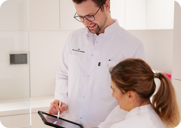 Die Arbeit bei uns ist vielseitig und abwechslungsreich. Du hast direkten Kontakt zu Patientinnen und Patienten, arbeitest mit modernen dermatologischen Verfahren und übernimmst unterschiedliche Aufgabenbereiche im Praxisalltag. So kannst du deine fachlichen Fähigkeiten kontinuierlich einbringen, weiterentwickeln und Verantwortung übernehmen, ohne dabei allein gelassen zu werden.
